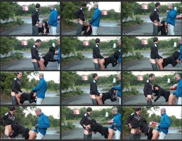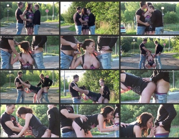 DESCRIPTION: A VERY pregnant girl is about to drop, but still horny and very adventurous with two guys found a spot where sun hits them from the side of the road, so, all the drivers and passengers can see them very well! They thought that they are out of reach of traffic but the group of cyclists, including cops, chased them out...